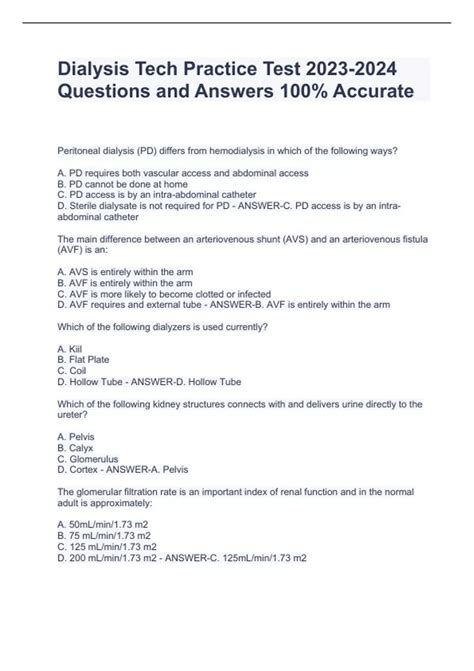 Read Online Dialysis technician practice exam PDF Library Genesis